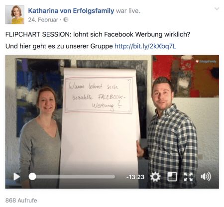 Alternativ kannst du dich auch einfach vor ein Flipchart stellen und deinen Followern einen wichtigen Zusammenhang erklären, sie inspirieren oder die Lösung zu einem bestimmten Problem aufzeigen. Dadurch bringst Du jede Menge Mehrwert in deine Posts, gibst Interessenten einen Einblick, machst neugierig, und positionierst dich als Experte für dein Thema.